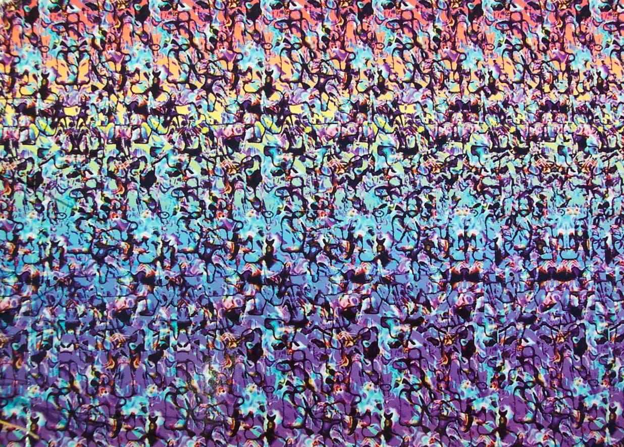 你有看過那種「視覺魔術繪本」(Magic Eye books)嗎?你的眼睛要瞇出個特定的力道,稍微有點失焦,換個視角,然後你會看見 3D 的影像浮出畫面。