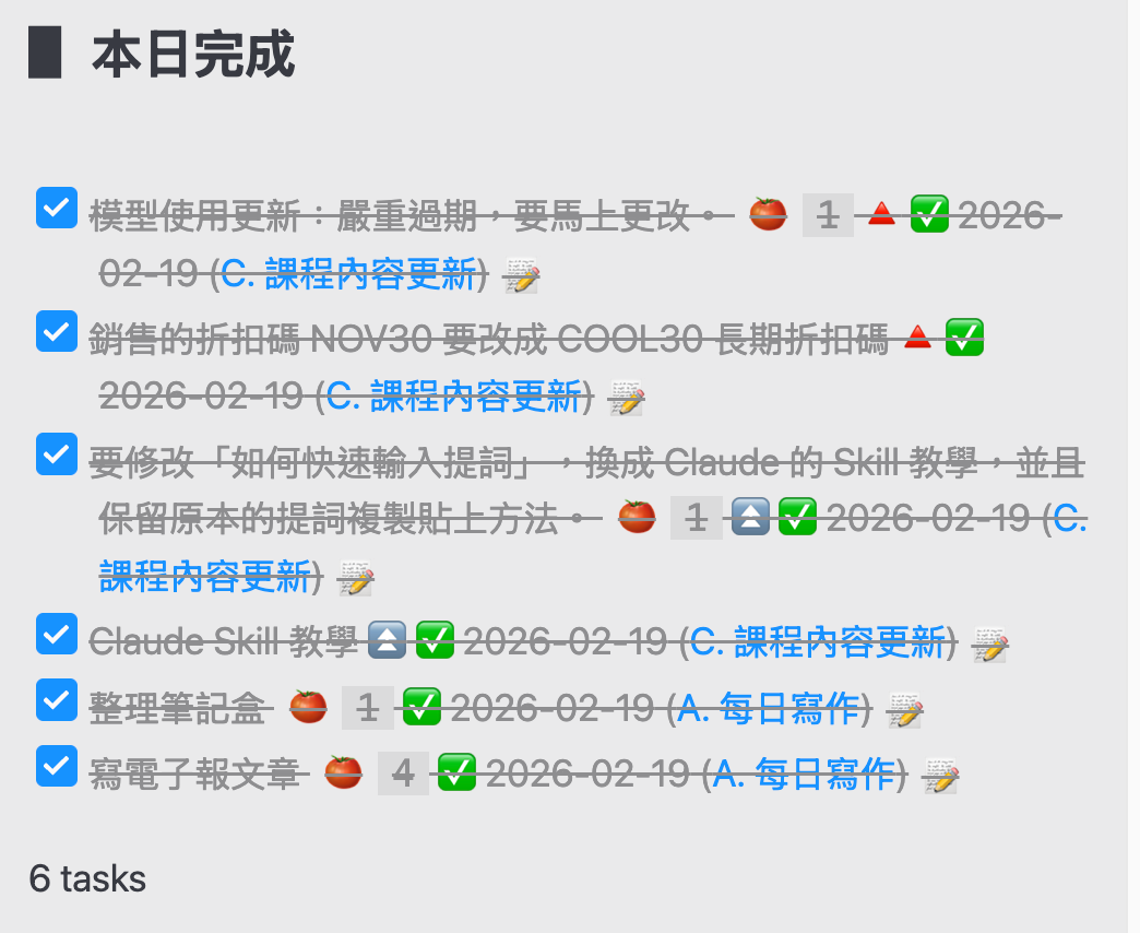 安裝了 Obsidian 的 Tasks 插件,才感覺工作真的是在打 Game。